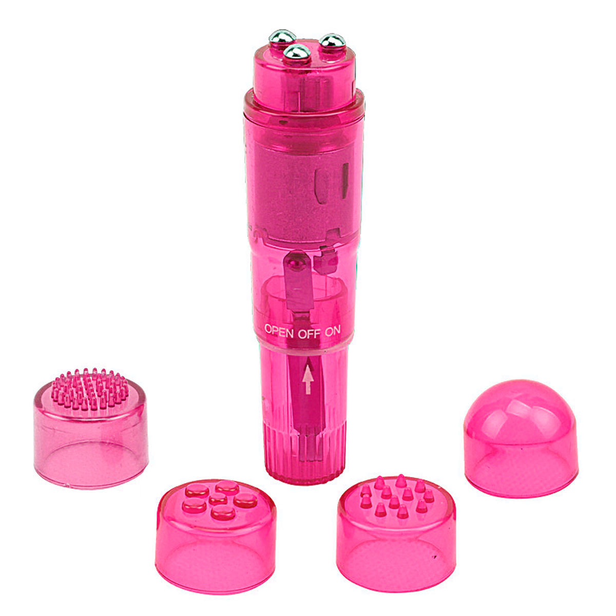 Estimulador con cabezas intercambiables. Es un estimulador unisex, de reducido tamaño, perfecto para llevar de viaje. Fabricado con material resistente. Puedes intercambiar sus cabezales por lo que podrás experimentar increibles sensaciones. Este juguete al ser resistente al agua podrás utilizar mientras te bañas o juegas en la ducha.